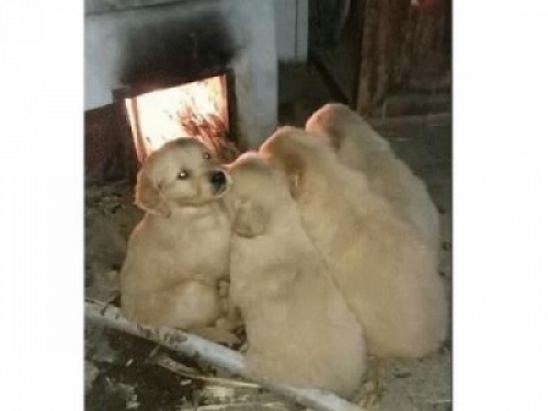四隻狗做在一起看起來是非常的開心,也跟人烤火一樣有說有笑鬧著玩。雖然城裡邊有空調但是還是沒有大家一起聚在火堆旁邊烤火熱鬧。你們家的狗子是怎麼取暖的呢?