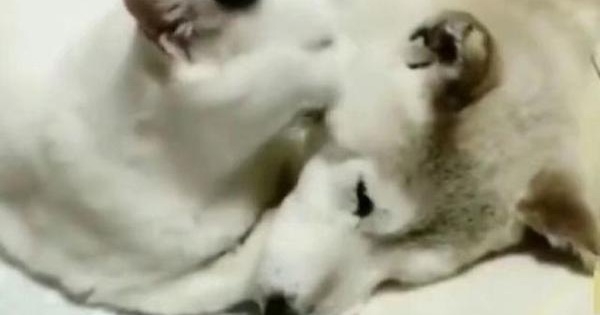 柴犬年紀太大又患上老年痴呆,相伴多年的貓咪不離不棄一直在旁照顧牠!兩人互相陪伴的畫面讓人感動想哭QQ