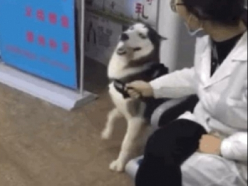 於是我找了一個凳子就坐了下來,然後等著叫號,這個時候,我就看到對面一個女醫生牽著一隻哈士奇,關鍵是這隻哈士奇好像一副懟天懟地的樣子,對什麼東西都不太服氣。