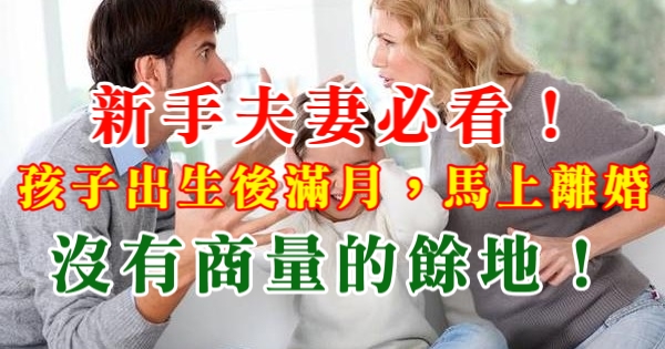 新手夫妻必看!孩子出生後滿月,馬上離婚,沒有商量的餘地!