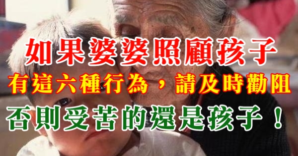 大家好,我是小寶貝媽媽經小編CA!今天要來說說關於「如果婆婆照顧孩子,有這六種行為,請及時勸阻!否則受苦的還是孩子!」的事!不知道大家對於這個有多了解呢?一起來看看吧!