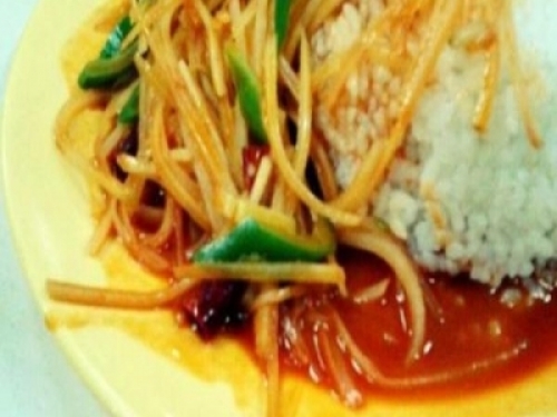 如果用熱量來考量它倆,一份酸辣土豆絲所提供的熱量就接近兩碗米飯。如此看老,這樣的搭配對於想控制的體重的人群還是少吃一點。