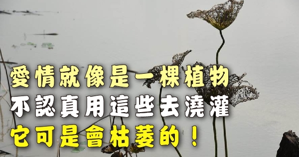 愛情就像是一棵植物,當你細心照顧它,澆水施肥,它就會茁壯成長,如果你粗心大意,不用這四樣東西去澆灌,它就會“枯萎”。