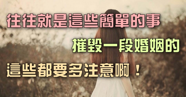 往往就是這些簡單的事,摧毀一段婚姻的,這些都要多注意啊!
