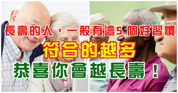 符合以上越多,你會越長壽!此外,若你有長壽基因(根據家族的長輩去世年齡可推斷),以下3個“減壽”習慣能改掉,你會活得更長!