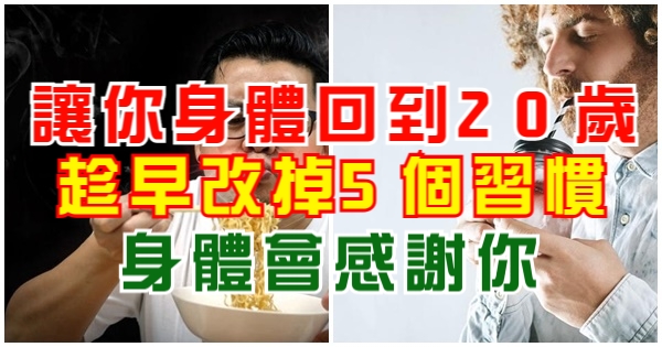 讓你身體回到20歲!趁早改掉5個習慣,身體會感謝你!