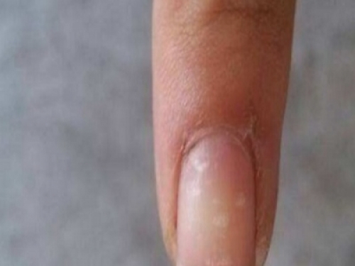 缺鋅、缺鈣和缺蛋白質也可造成指甲出現白點。鋅是人體中必須的一種微量元素,缺鈣會導致白甲症,而缺乏蛋白質的人,指甲指甲床上會出現白色橫條紋。