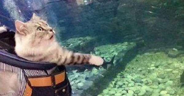 主人帶著貓咪去參觀水族館,結果貓咪死活不願意走,直到主人使出「這招」貓咪才肯乖乖跟他回家~~