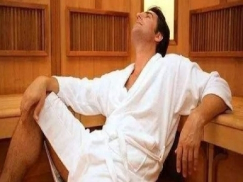 身體感覺到極度疲勞時蒸個桑拿,是不少中老年男性熱衷的休閑方式。實際上,桑拿房裡過高的溫度會使人體皮下血管迅速擴張,面板血流量比平時增加3—5倍,回到心髒的血流量也顯著增加,心髒負擔加重。