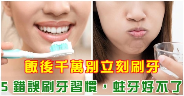 大多數人從小已養成早晚刷牙習慣,甚至用餐後立即刷牙,保持口腔清潔。但不少人或有疑問,為何勤刷牙仍患有蛀牙?原來可能跟以下5個常見的刷牙錯誤習慣有關,大家不妨注意呢。