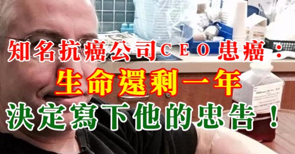 知名抗癌公司CEO患癌:生命還剩一年,決定寫下他的忠告!!!