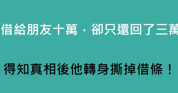 大家好,我是有錢人這麼想小編Choco!今天要來說說關於借給朋友十萬,多年後卻只還回了三萬,得知真相後他轉身撕掉借條!的事!不知道大家對於這個有多了解呢?一起來看看吧!
