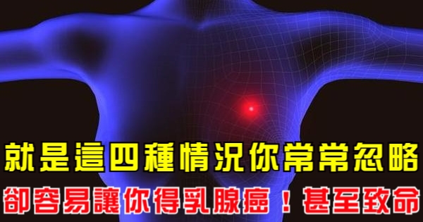 各位讀者安安阿~~我是健康一點靈小編CA!今天要來說說關於「警告!就是這四種情況你常常忽略,卻容易讓你得乳腺癌!甚至致命!」,不知道大家有沒有興趣呢!一起來看看吧!