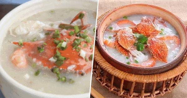 將炒好的螃蟹放入粥中、再放入蝦和蛤蜊小火燜10分鐘