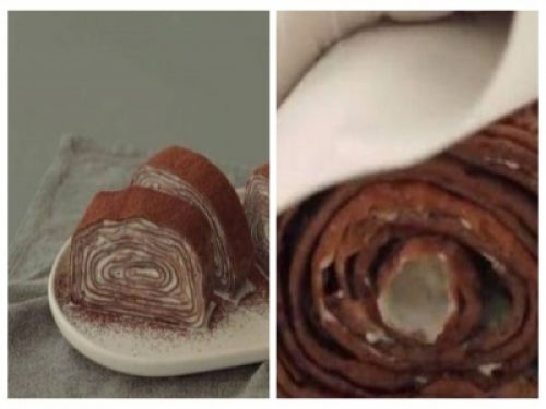 最後撒上可可粉裝飾,網紅可可毛巾捲,就完成啦。