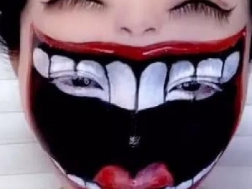 真的第一眼真的都看不出來這位女子的眼睛在哪,感覺好像就是上面那個用畫出來的眼睛就是他的眼睛,直到最後一張女子張開眼睛後才知道,原來眼睛是在牙齒上啊!當初小編真的是看很久才看出來,不過這個妝到底是怎麼化的阿,鼻子整個完全看不出來耶!真的太厲害了,好想看他化妝的過程喔~感覺一定也是很酷!