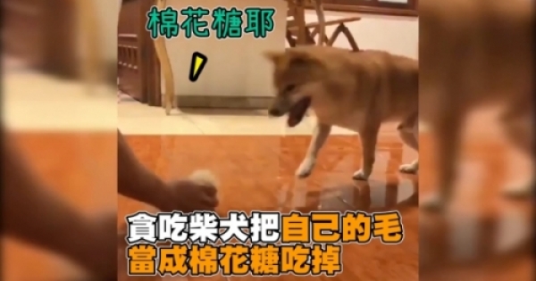 影片中主人故意把從柴柴身上梳下來的毛揉成一團,在柴柴的眼裡看起來就像好好吃的棉花糖,然後主人原本是想把毛拿去丟,但柴柴好像以為這個毛茸茸一團的東西就是棉花糖,纏著主人就是想把這團東西給搶走!