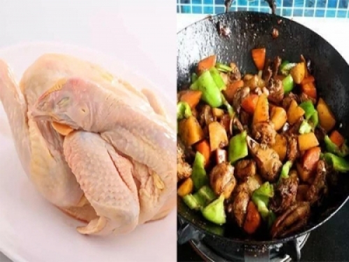 用料:三黃雞、土豆、胡蘿蔔、柿子椒、花生油、醬油、蔥、姜、蒜、八角、白糖、高湯