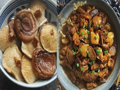 冬菇是廣東人的叫法,其實這就是人們常說的香菇,是具有高蛋白、低脂肪、多醣、多種氨基酸和多種維生素的菌類食物。香菇和雞肉搭配就很完美,無論燜也好,清蒸也好,或是燉湯,冬菇和雞都可以互相提升香氣,兩種食物互相滲入,會使菜的香味發揮到極致,是一道好吃的經典粵菜!