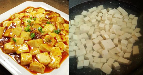 豆腐我們要選北豆腐,把豆腐切成塊之後我們在沸水中煮一下,水中可以加上一些鹽,這樣煮出來的豆腐不僅僅會入味而且還不會散。