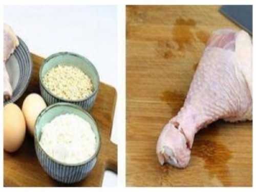 第一步:準備食材。雞腿3個、麵粉適量、雞蛋2個、燕麥片適量。