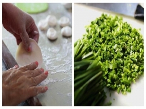 2、韭菜切好後,要在我們要在開始包餃子的時候再把韭菜混在其他餡料裡,以免鹽會讓韭菜裡面的水分醃出。