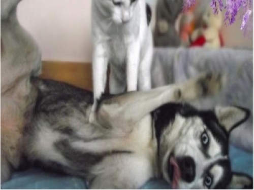 受卡通影響,總以為貓狗天生不和,但長大後才發現--千萬別把哈士奇跟貓養在一起,不然真的會被笑慘阿!!