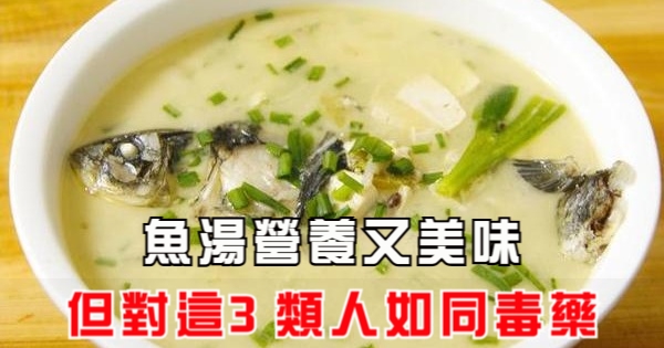 3類人群不宜喝 由於長時間熬煮,濃魚湯裡含有大量的脂肪及嘌呤等成分,因此高血脂、肥胖、痛風病人都不適合喝奶白色的湯,即使是健康人也不要貪圖美味而多喝。 本文參考資料: