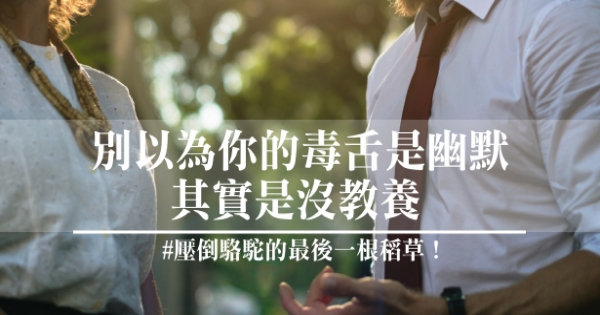 壓倒駱駝的最後一根稻草!別以為毒舌是幽默風趣,有時候其實是沒教養!