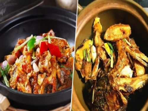 砂鍋魚頭也就是廣東的啫啫(jue jue)魚頭煲,因在烹煮時發“啫啫”聲而得名。此魚頭煲的魚頭肉,又滑又厚,生啫醬則醬味十足,咸鮮回甜,一定要趁熱食用。大魚頭的魚頭肉質細嫩、營養豐富,選用它做魚頭煲是主好的。