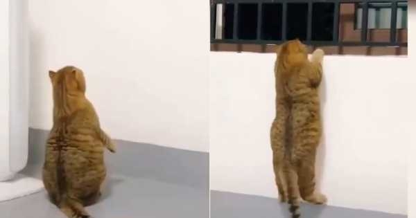 影片中只見貓咪一臉信誓旦旦地看著窗外,看起來好像是要一鼓作氣地跳上窗外跑出去玩,主人也在一旁拿出攝影機準備幫貓咪記錄下這個瞬間,但結果卻....