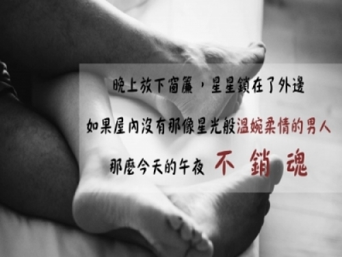 晚上放下窗簾,星星鎖在了外邊,如果屋內沒有那像星光般溫婉柔情的男人,那麼今天的午夜不銷魂。