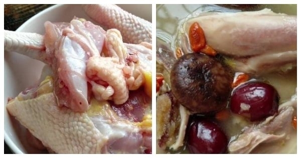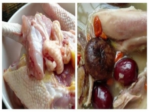 準備一隻老母雞,收拾乾淨洗淨,然後把雞脖子去掉,老母雞脖子含重金屬於量高。