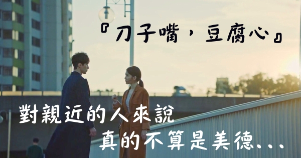 明明是為了表達關心,卻總是心口不一,說著傷人的話,「刀子嘴豆腐心」,對親近的人來說,真的不算是美德。