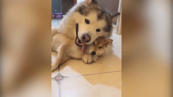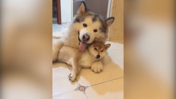 二哈呆呆的樣子,不管事在人類面前,或是同類都如徹一轍,國外這家人養了二哈跟柴柴,兩人從小就感情很好,每天都要膩在一起,不管做什麼都要一起,這天主人意外看一個奇特的畫面,趕緊拍下來跟大家分享。