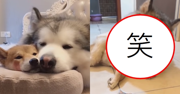二哈柴犬哥倆好!不只吃飯要一起,連睡覺也要一起!超奇特「睡姿」笑翻一群人XD