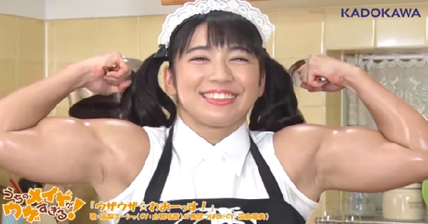 日本知名動畫《我家的女僕有夠煩》在近期請來了網路紅人肌肉美少女替主題曲宣傳,擁有壯碩二頭肌的她,與動畫中的角色非常相像,此影片一出帶來極大的回響,甜美臉龐但身體卻非常壯碩的她,因為用超強的臂力煮飯,而得到小主人的歡心。