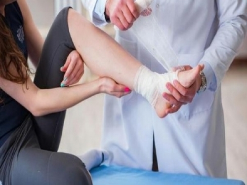 用繃帶包裹腳踝