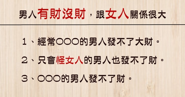 2、只會怪女人的男人也發不了財。