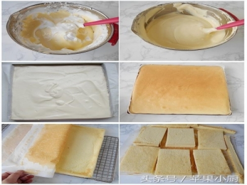 這個蛋糕用的方子就是蛋糕卷的配方,做法也與蛋糕卷相同。只是烤好後,卷起來和切開的區分。蛋糕卷也是不少新手頭疼的,明明烤得好好的,但在卷的過程中卻破了裂了。所以,如果你還掌握不了蛋糕卷法,就從今天這個水果奶油蛋糕做起!