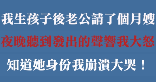 生孩子後老公請了個月嫂,夜晚聽到所發出的聲響我大怒,當知道她身份我崩潰大哭!