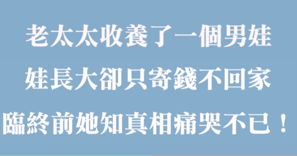 大家好,我是Choco 今天來跟你說說 老太太收養一男娃,娃長大卻只寄錢不回家,臨終前她知真相痛哭不已!吧!