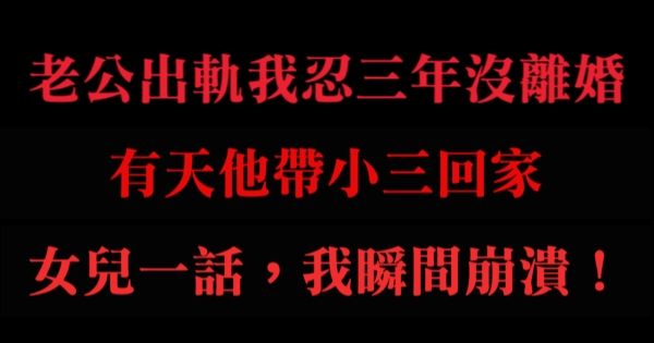 大家好,我是 Choco 今天來跟你說說 老公出軌我忍三年沒離婚,有天他帶小三回家,女兒一話,我瞬間崩潰!吧!讓我們來看看!