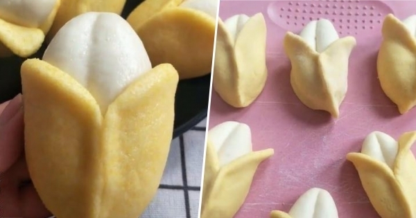 其實這只是普通的麵粉,發酵以後,通過兩種顏色做出來的卡通包。本來還想著在裡麵包點豆沙,但是家裡沒有紅豆了,就沒有包餡料,吃起點就是普通的饅頭,外面黃色的外皮是用玉米麵做的,所以顏色蒸出來以後都沒有怎麼變,跟真的香蕉一樣一樣的,很是漂亮。