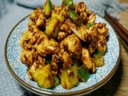 雞胸肉1塊,黃瓜1根,甜麵醬3勺,白糖1勺,白鬍椒粉少許,蛋清半個,澱粉1勺,蔥姜蒜適量