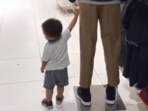 日前在網路上流傳一支超可愛的影片,影片中這名日本小男童跟家人一起逛賣場,想不到這小男童不知道為甚麼突然簽起店裡面人形模特兒的手,然後就這樣跟著模特兒站在原地好久,男童的爸爸在後面看到後便拿起手機拍下這幕!網友笑說「爸爸應該超傻眼XDD」