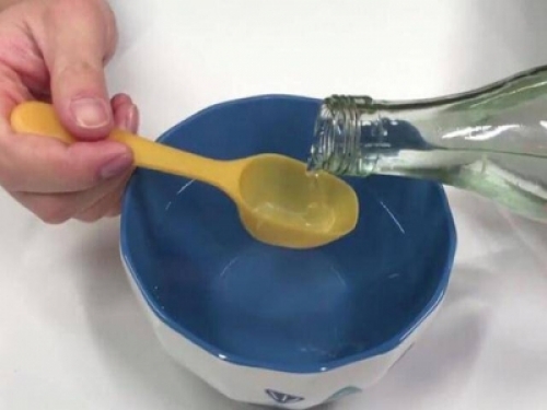 我們先準備一隻碗,然後往碗中倒入清水,大約200毫升左右就可以了,接著再往水中加入白醋,用量為2勺,攪拌均勻。
