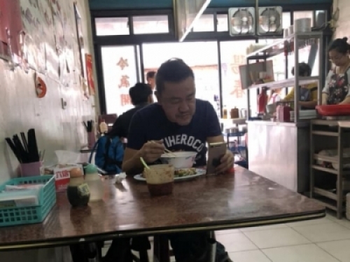 網友在爆廢公社上貼出一張照片,說自己在吃麵時遇到一個看起來很眼熟的人,但一直想不起來他是誰,於是決定PO網詢問,結果一PO網,馬上吸引大批網友在下面留言說「這是鬼王你不認識!」「全台灣最容易遇到鬼的人耶!」「你不知道他是誰,你這什麼態度!」「你一定剛從國外回來!」