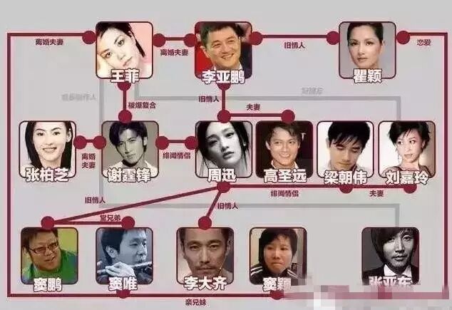 謝霆鋒、張柏芝、王菲在娛樂圈的關係大概是這樣子的,大家自行補腦。
