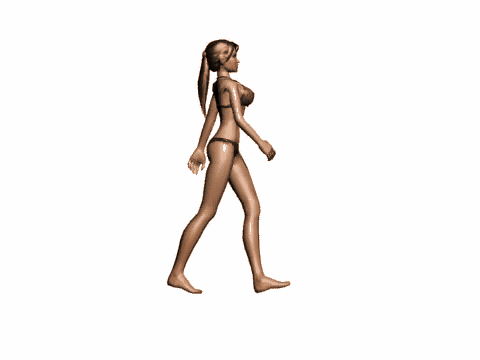 儘可能跨大步伐(但也不用太刻意),感覺臀部的肌肉也被牽動到。踏出時腳跟先著地,再把重心移到腳掌處。
